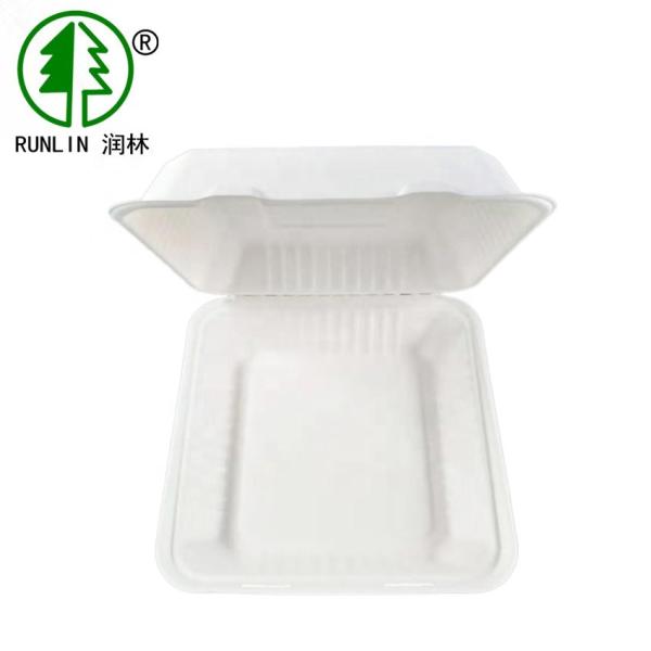 Disposable Clamshell Biodegradable Microwave Natural Sugarcane Pulp Packaging Tray Images |